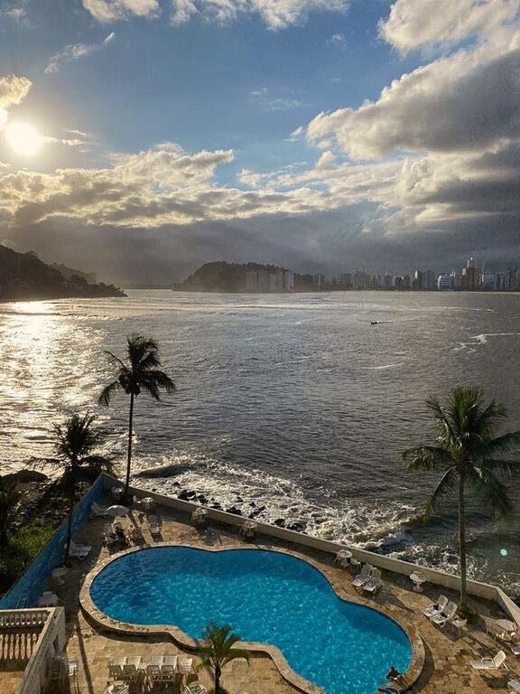 Quantas opções de hospedagem na região de Santos! E que área maravilhosa da piscina do Ilha Porchat Hotel!